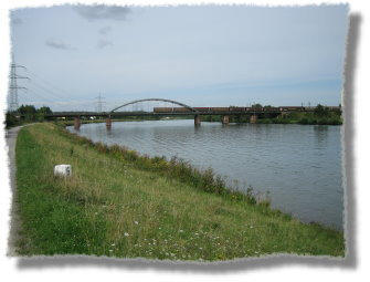 die Eisenbahnbrücke rüber nach Stockstadt...