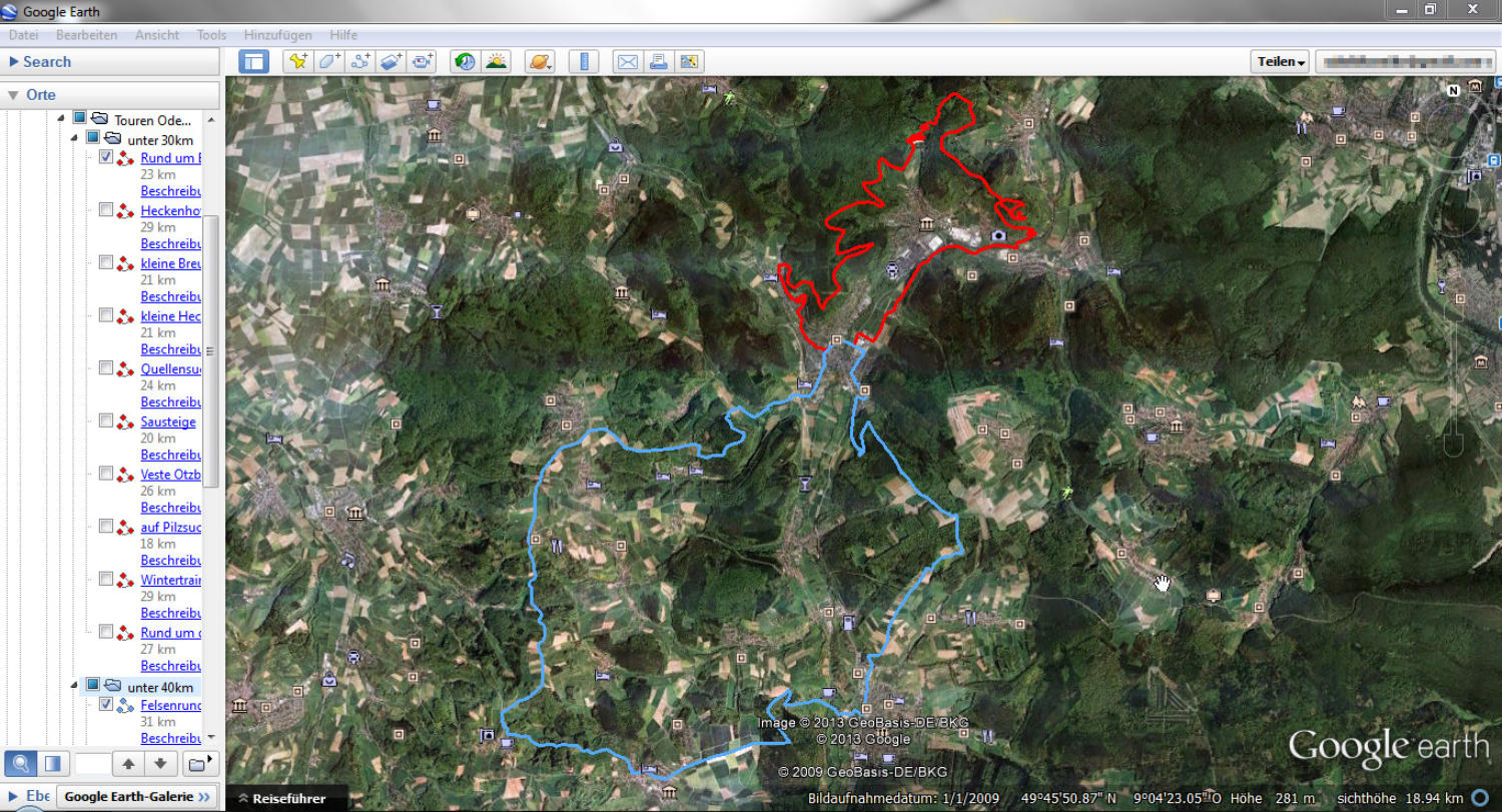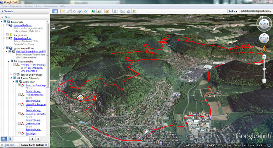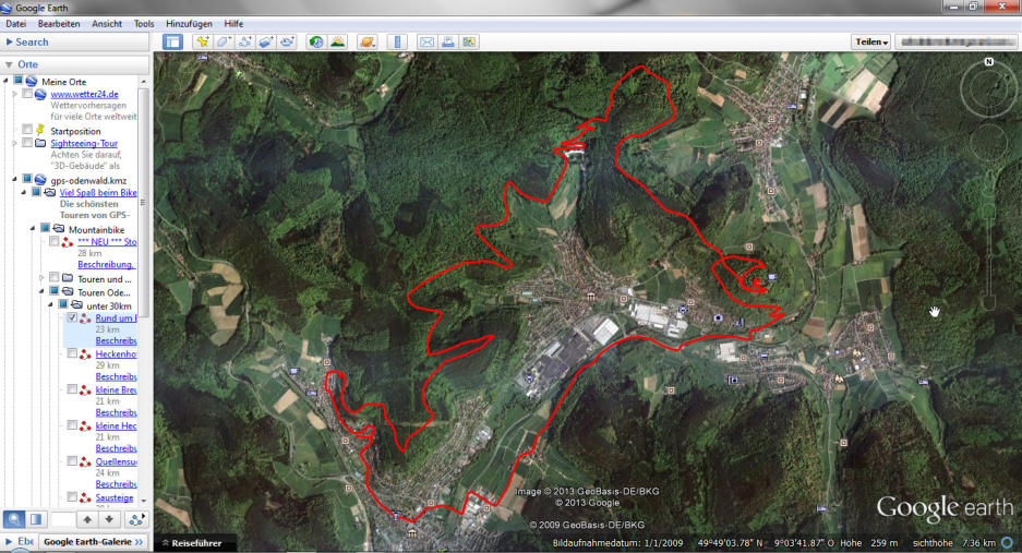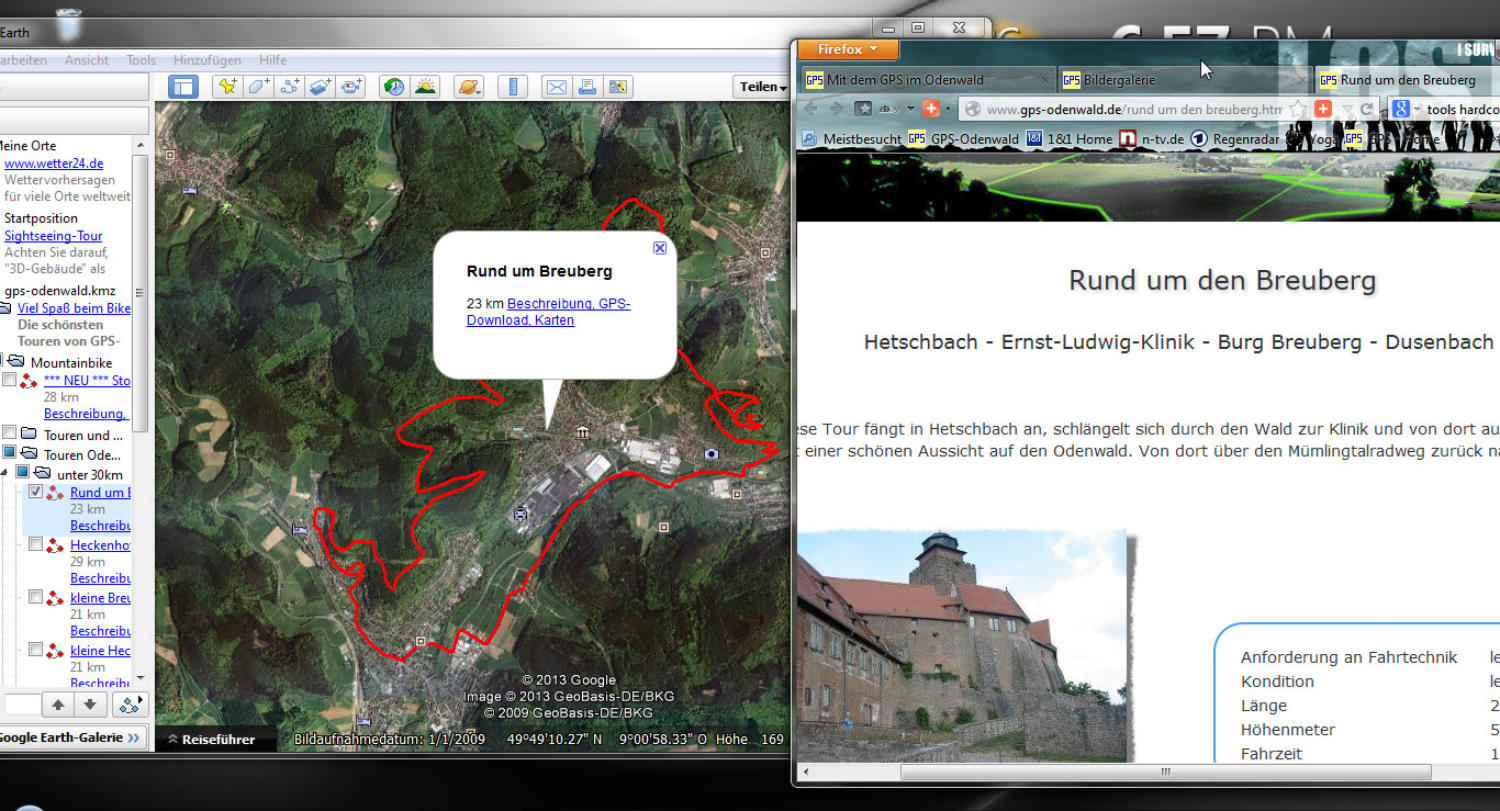 Durch anklicken der “Beschreibung, GPS...” wird die Tour im Browser geöffnet...