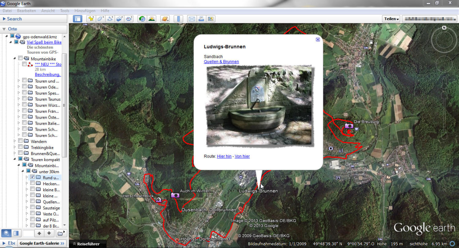 Die Brunnen und Quellen, die am Wege der Touren liegen, können mit Bild eingeblendet werden.