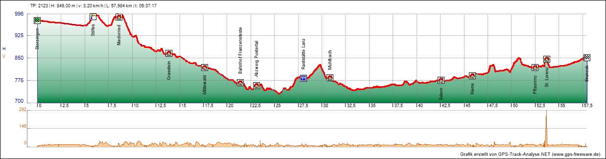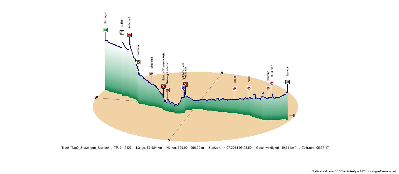 Sterzingen - Stilfes - Niederried - Grasstein - Mittewald - Franzensfeste - Raststätte Lanz
