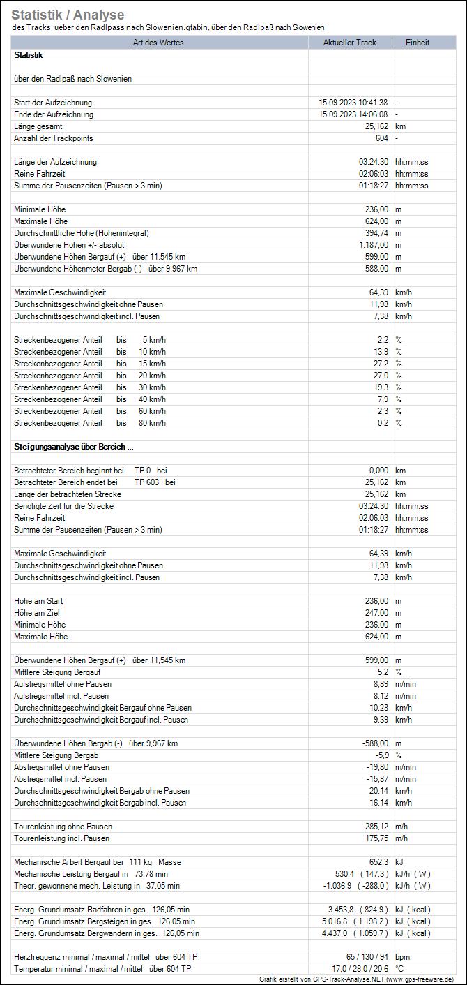 die Trackstatistik